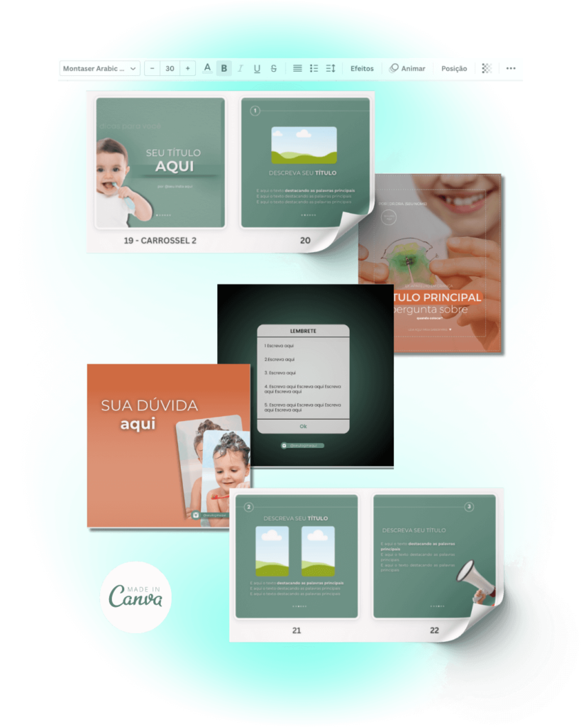 No Templates ODPBX você terá acesso a diversos templates feitos por mim, que somente os alunos e alunas do OdontoPEDBOX costumam ter. Esses templates são criados e editados via Canva e disponibilizamos algumas aulas para que você possa editar, adicionando o conteúdo que desejar e até mesmo fotos dos seus casos e tratamentos.
