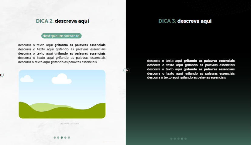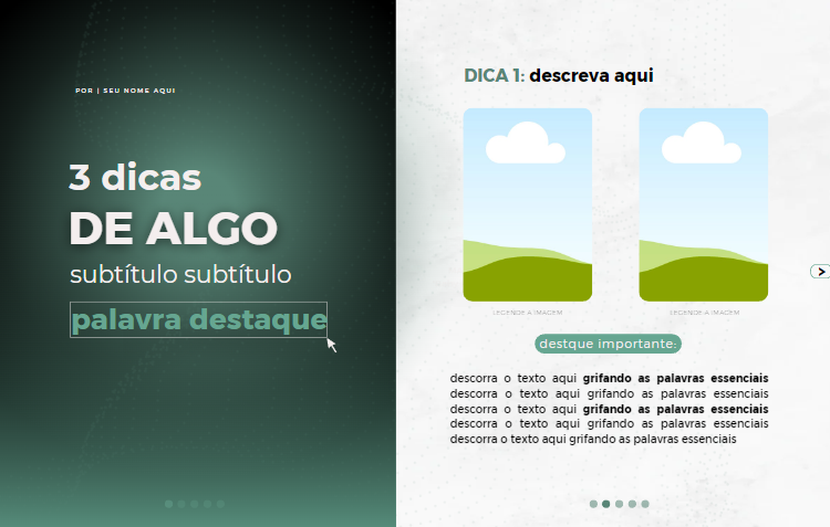 • Nele você adiciona imagens, títulos e textos conforme o tema escolhido.